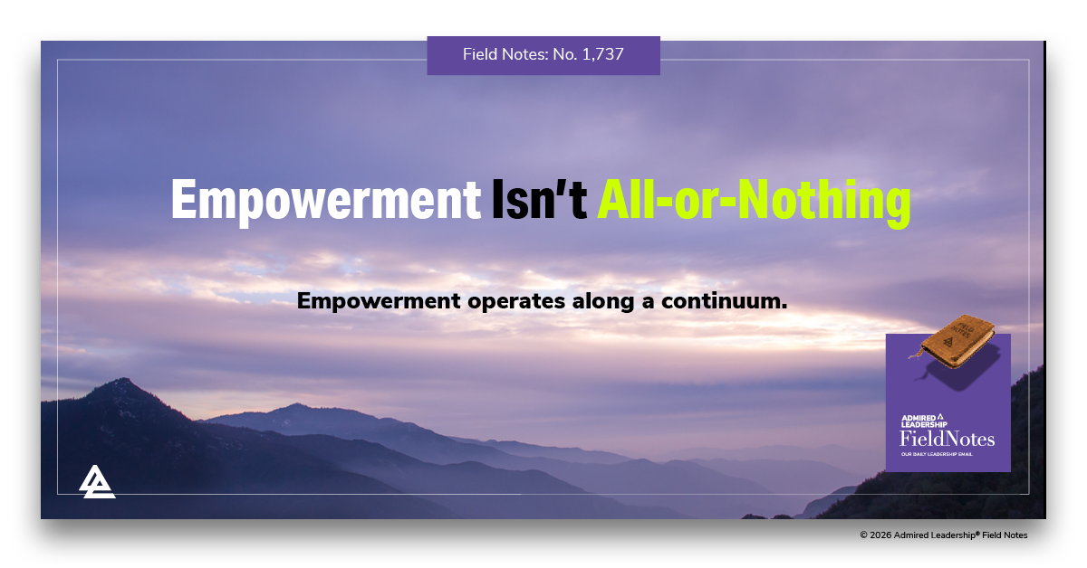 Empowering others occurs along a continuum of control. The best leaders cede the most control they can as often as they can.